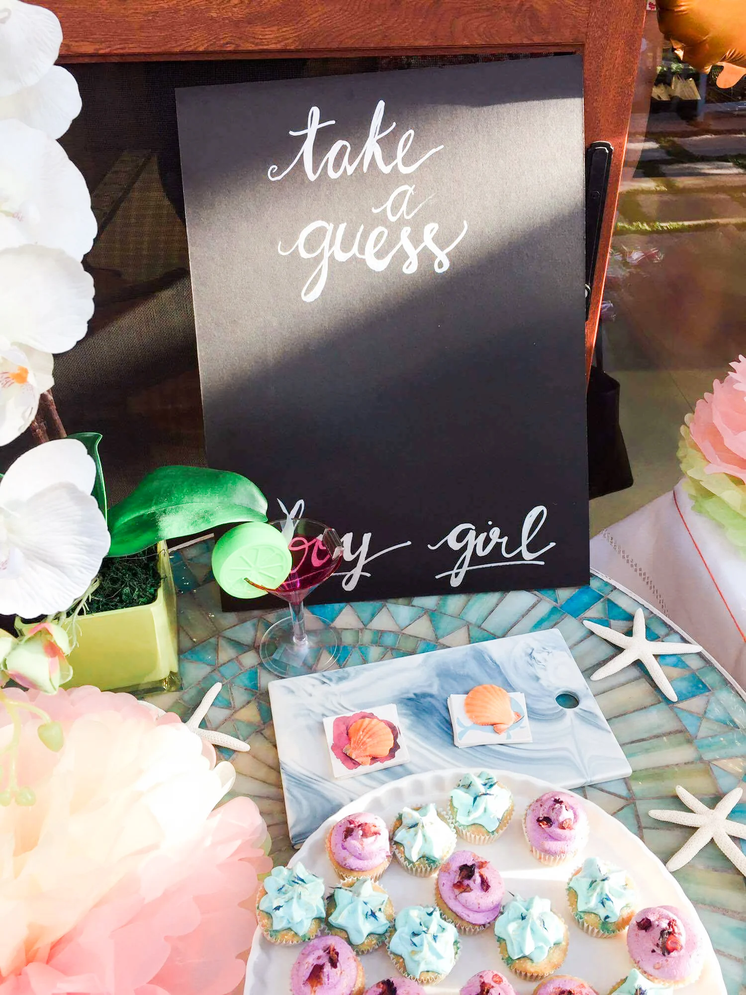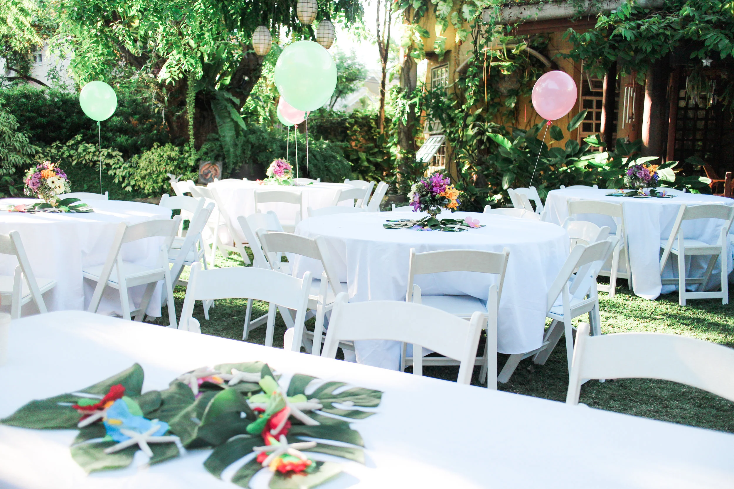 First, the theme. I didn't want the party to literally say BABY! so I searched for the perfect theme to tie everything together. Considering that our baby would be born during summer (and we were all beginning to feel the heatwave), I just knew that it had to be TROPICAL. So I scoured the city - mostly from my laptop - for suppliers of garden chairs, monstera leaves, orchids, seashells, starfishes, and tropical flowers. It was so exciting to do it myself because I learned how to be resourceful and creative... At first I thought I needed a stylist but when they gave such exorbitant rates for a baby shower, I knew that it was time for me to learn how to plan parties on my own.