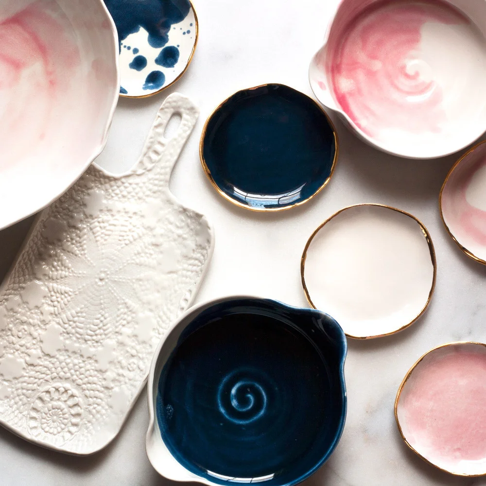 Suite One Studio produces chic, colorful porcelain that can dress up both dining tables and coffee tables.